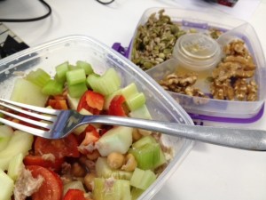 - A can of tuna mixed with a little natural yogurt, a squeeze of lemon, chives and some chopped cucumber
